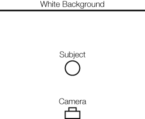This is our setup in its simplest form, with no lights added as of yet. Before we begin, let's create a checklist of things that we want to accomplish: 1. Create an evenly exposed white background with