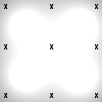 Now that you have your lights in place with the method of your choice, it is time to fine-tune the exposure. Depending on the size of the background you need to cover, you will need to adjust the placement of your lights accordingly. A group shot will obviously need much more width between the lights than a one person portrait, and the height of the subject(s) will determine the height of the lights on their respective stands. The important thing is that the background is as evenly-lit as possible when finished. Both groups of two lights should be equal distance and at the same angle to the background. The power of the lights should all be the same. Once this is done, take a general exposure reading by placing your light meter against the background and pointing it at your camera. Be sure to not stand in the way of the lights and prevent light from hitting your meter, and fire the lights with either a sync cord of radio remote such as a Pocket Wizard. For this example, let's say that your reading is F/8.5. You will need to verify this reading by metering at many different points across the background. I have added the photo from earlier with the typical problem areas to watch for: